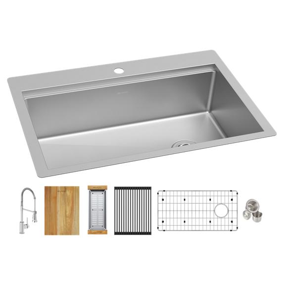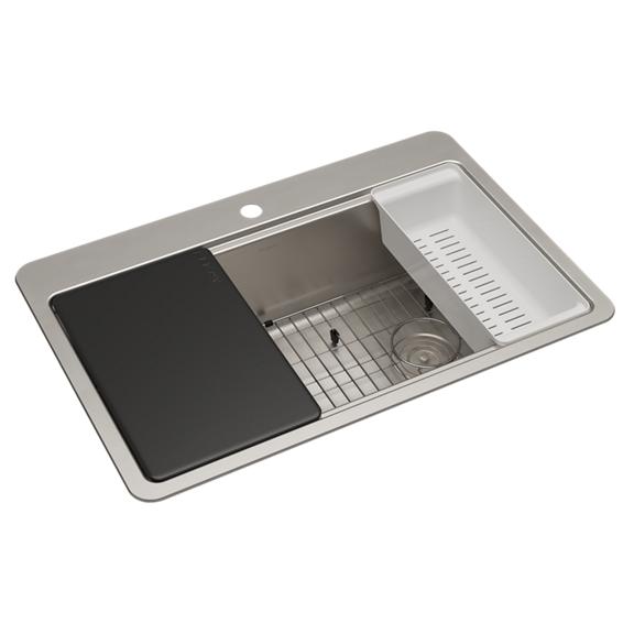 Discover Elkay workstation sinks in stainless steel, quartz, and fireclay — designed to fit every kitchen style. Our workstation kitchen sinks are engineered for convenience and functionality, featuring built-in ledges and sink accessories like cutting boards, colanders, and drying racks. These integrated accessories maximize your workspace, streamline meal prep, and help keep kitchen countertops clutter-free. Whether you’re upgrading to a modern workstation sink or looking for a durable solution for everyday use, Elkay has the perfect sink for your home.